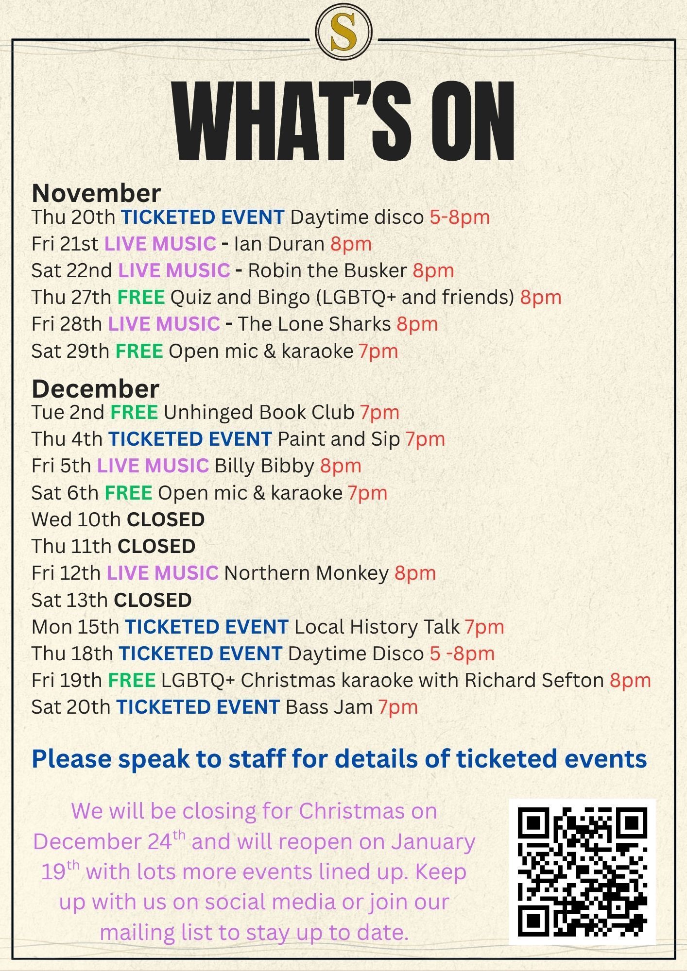 Join us for an unforgettable celebration at Sheldons Cafe Bar as we invite you to our monthly Daytime Disco! 5pm - 8pm get your dancing shoes Get ready to immerse yourself in fantastic energy and dance to timeless hits from the fabulous 60s, 70s, and 80s. It's the perfect opportunity to enjoy good company, great music, and a vibrant atmosphere. Don't miss out on this exciting event—a fun filled day awaits you! Tickets are available at the bar or you can simple pay over the phone. Tickets are non refundable.